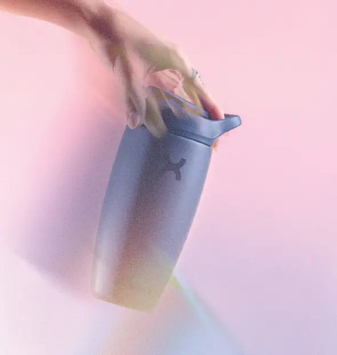 Stilren flaska i ECOZEN™ som kombinerar vattenflaska och shaker i ett.Lätt, hållbar och 100 % läckagesäker – perfekt för vatten, protein eller infusioner.